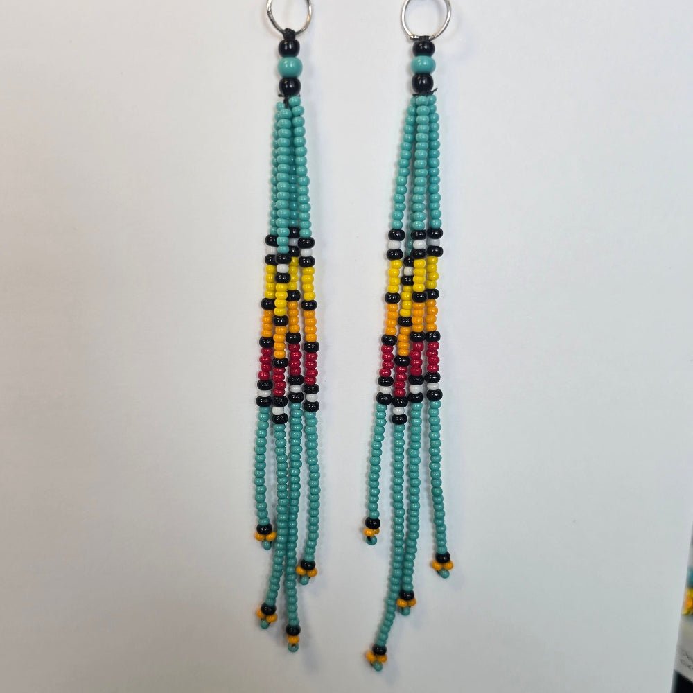 Sunset with a Touch of Southwest Turquoise Earrings – Handcrafted Native Beadwork