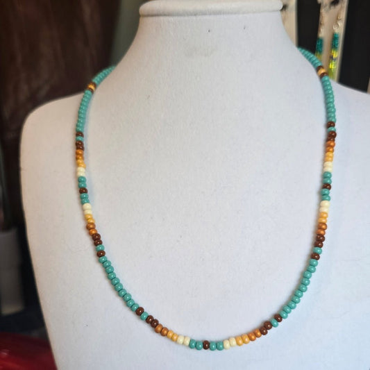Handmade Southwest Sunrise Beaded Necklace | Traditional Native American Colors