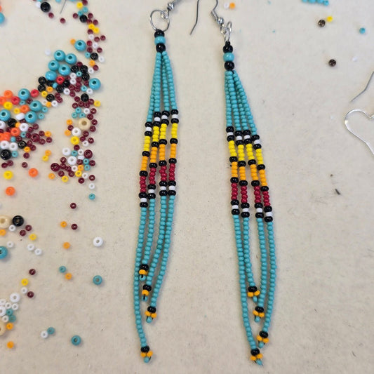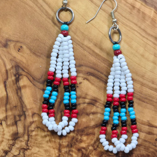 Red & Turquoise Two Dangle Earrings – Native American Style – Handmade Beadwork
