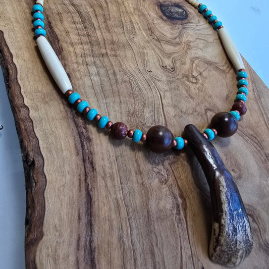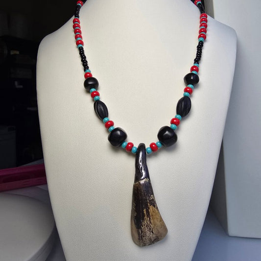 Buffalo Tooth Horn Beaded Necklace Black & Red
